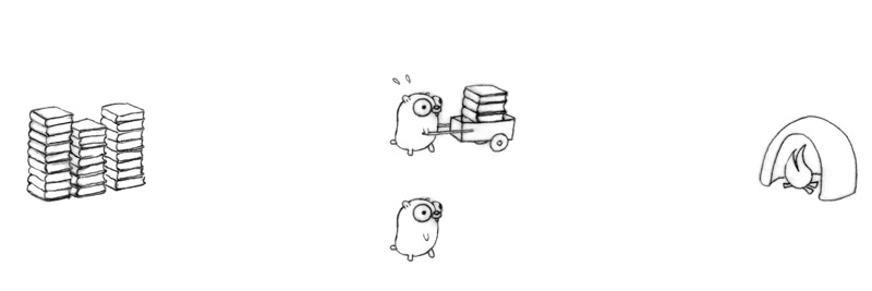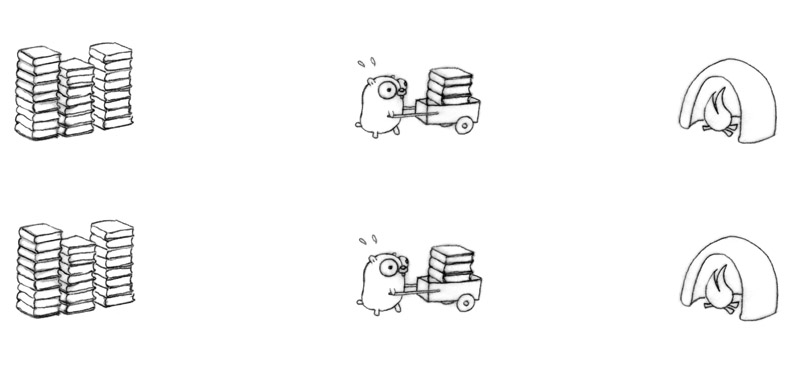 Four gophers in action for better flow, each doing one simple task.
